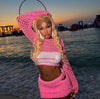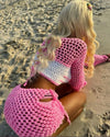 Une aura de liberté et d’élégance émane de cet ensemble crochet pensé pour sublimer chaque mouvement. Le haut, délicatement travaillé avec ses manches évasées et son laçage raffiné, joue entre transparence et charme naturel. La jupe courte, souple et structurée, épouse la silhouette tout en laissant une grande légèreté.
